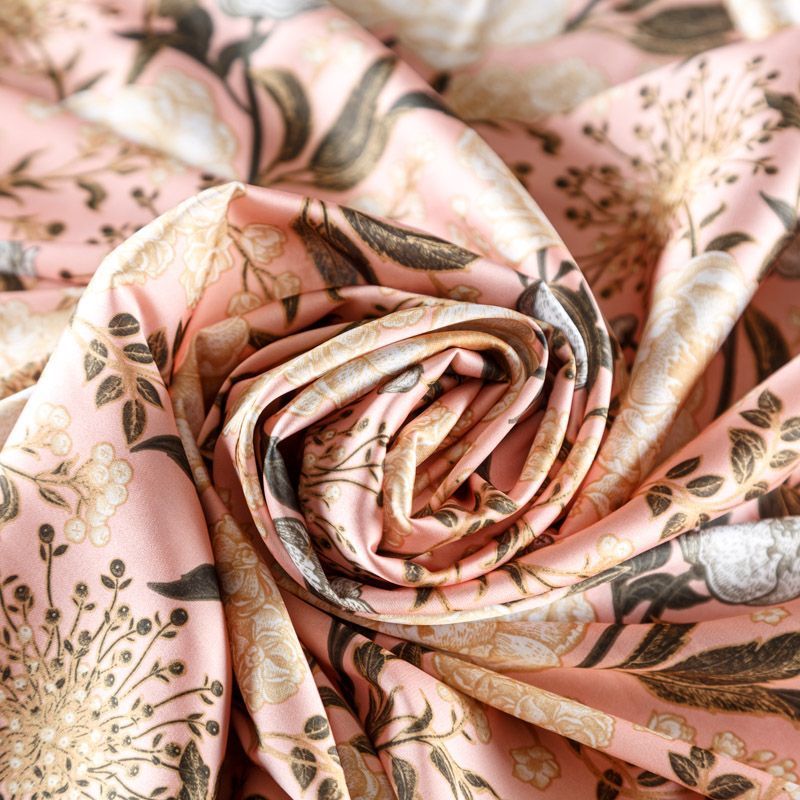 Шелк синтетический 065-02651 пудрово-розовый принтованный в Москве