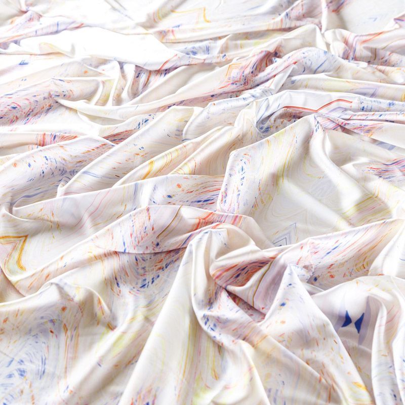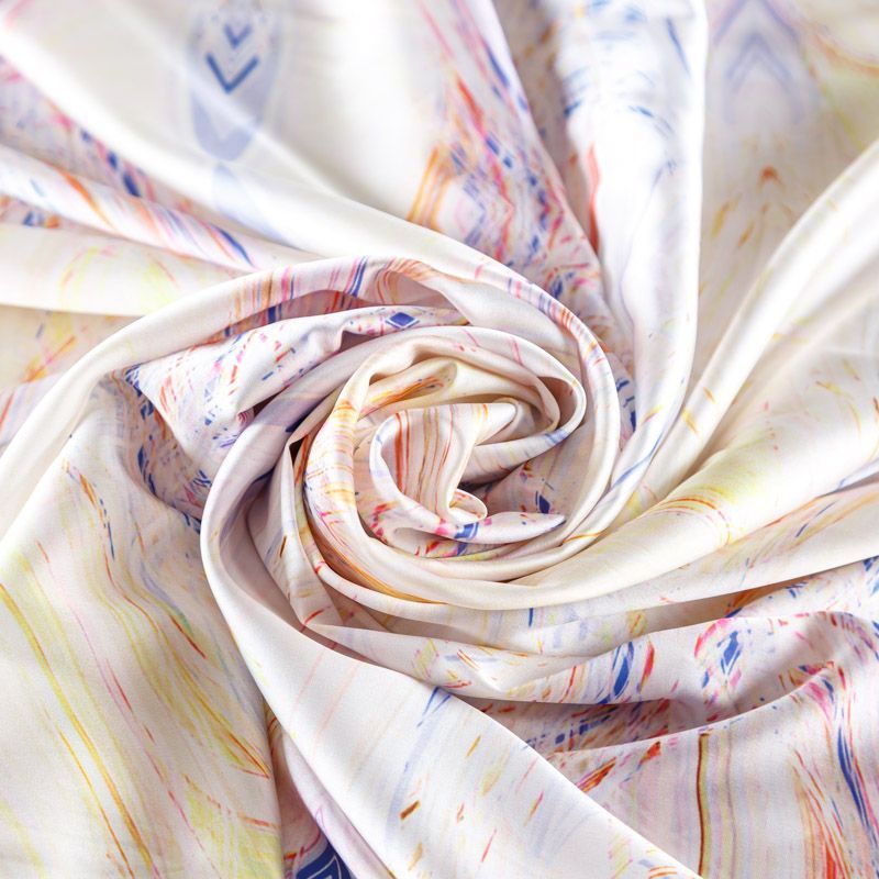 Шелк синтетический К33-049 молочный принтованный в Москве