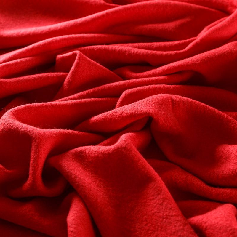 Итальянская буклированная фактурная шерсть в красном оттенке. Ткань хорошо держит форму, приятная на ощупь, гибкая, средней толщины, средней плотности. Подойдет для пошива теплого костюма, юбки, облегченного пальто, куртки, жакета, парки, кейпа, жакета или пончо.