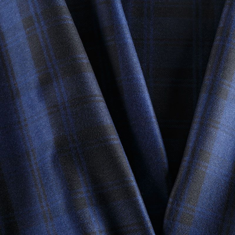 Костюмно-плательная итальянская шерсть средней плотности, мягкая, пластичная, хорошо драпируется и ниспадает. Очень теплая, уютная, не колется, в носке очень комфортная. Сочетание линий синего и черного цветов образуют красивую клетку. Ткань прекрасно подойдет для пошива стильного платья прямого или расклешенного силуэта для сезона осень-зима, куртки-рубашки, юбки, костюмов, жакетов, брюк или шорт.