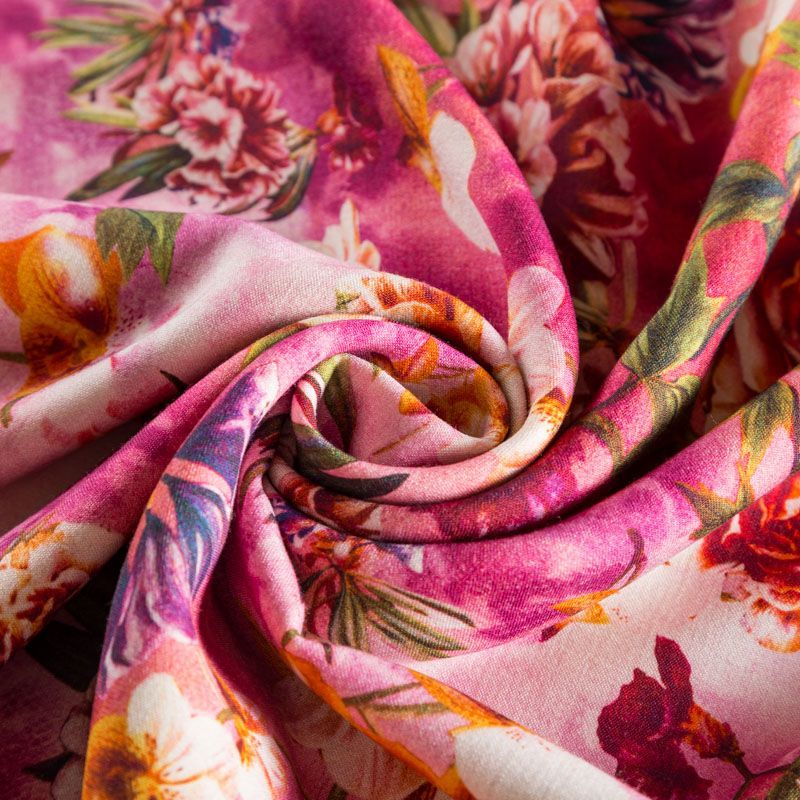 Итальянская плательная шерсть в розовых оттенках с ярким цветочным принтом. Ткань тонкая, мягкая и пластичная, отлично драпируется, тянется за счет эластана в составе. Поверхность матовая с полотняным плетением нитей. Прекрасно подойдет для создания осенних платьев, теплых туник, юбок, кофточек, а также аксессуаров, таких как палантины, шарфы, платки.