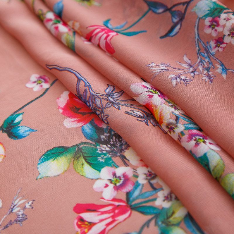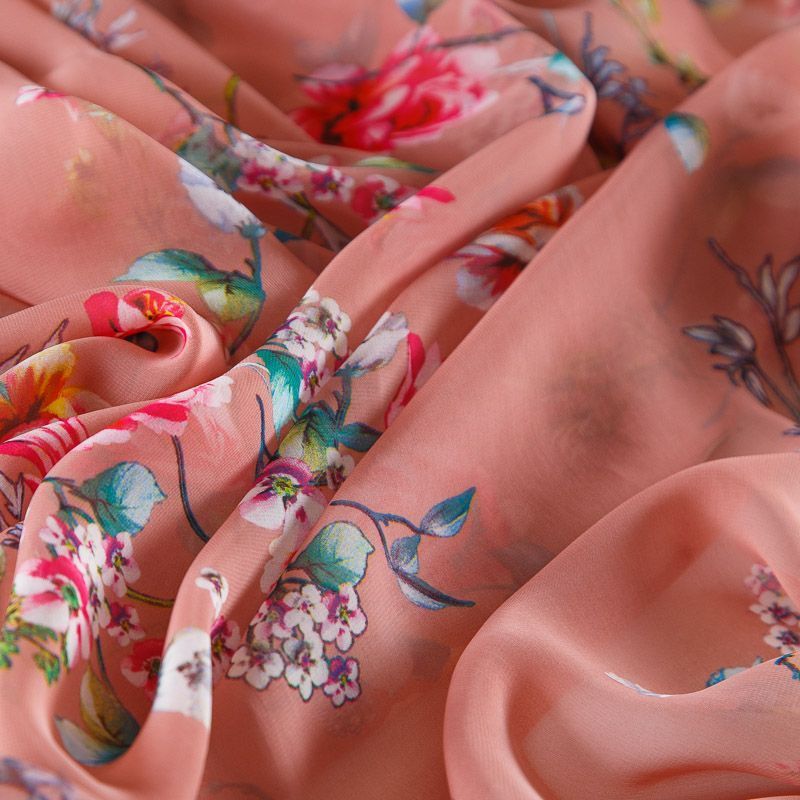 Шифон 068-17426 разбеленный коралловый принтованный в Москве