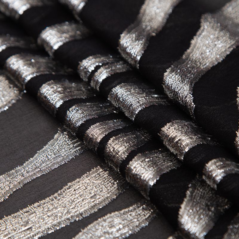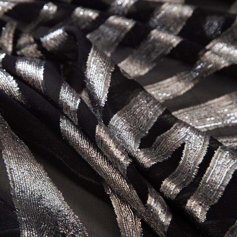 Шифон деворе шелковый 068-19623 черный/серебро в Москве