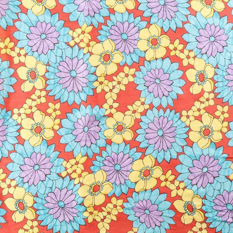 Шифон натуральный К01-702 красный принтованный