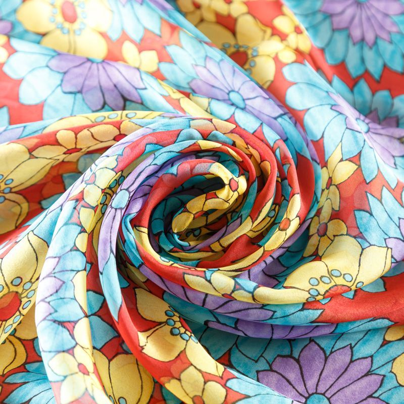 Шифон натуральный К01-702 красный принтованный в Москве