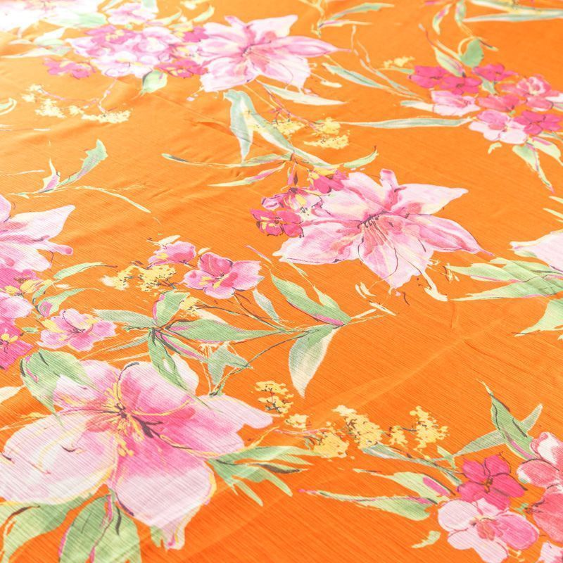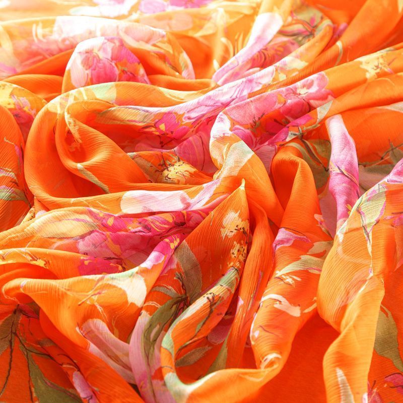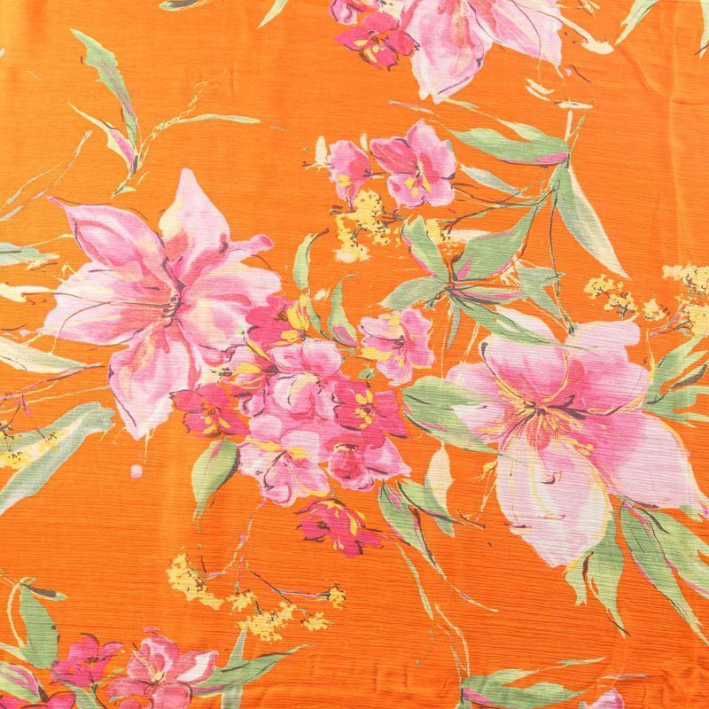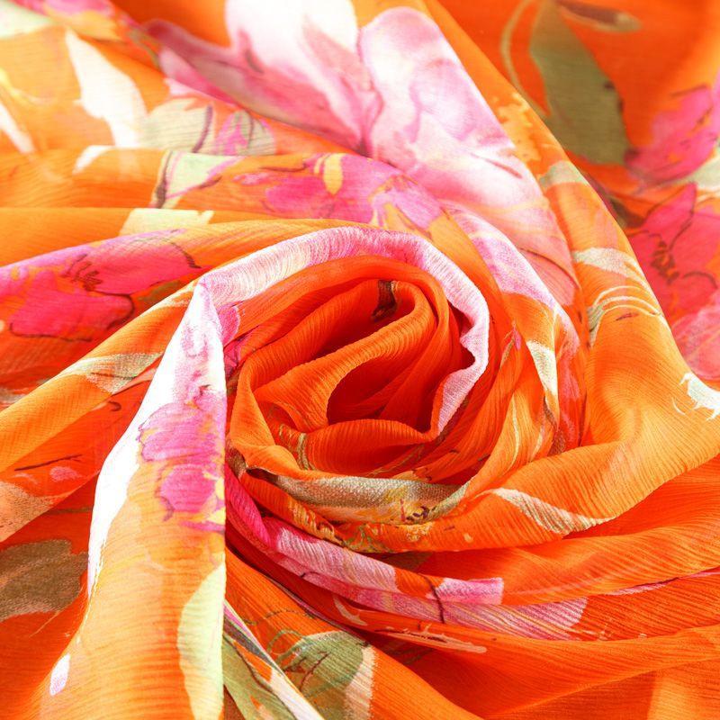 Шифон натуральный К02-426 апельсиновый принтованный в Москве