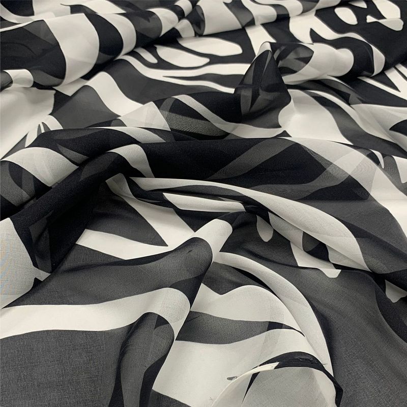 Шифон шелковый 068-11796 черный принтованный в Москве