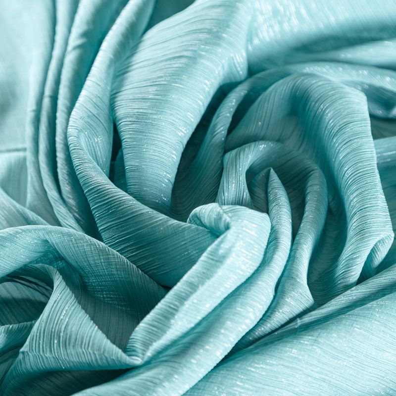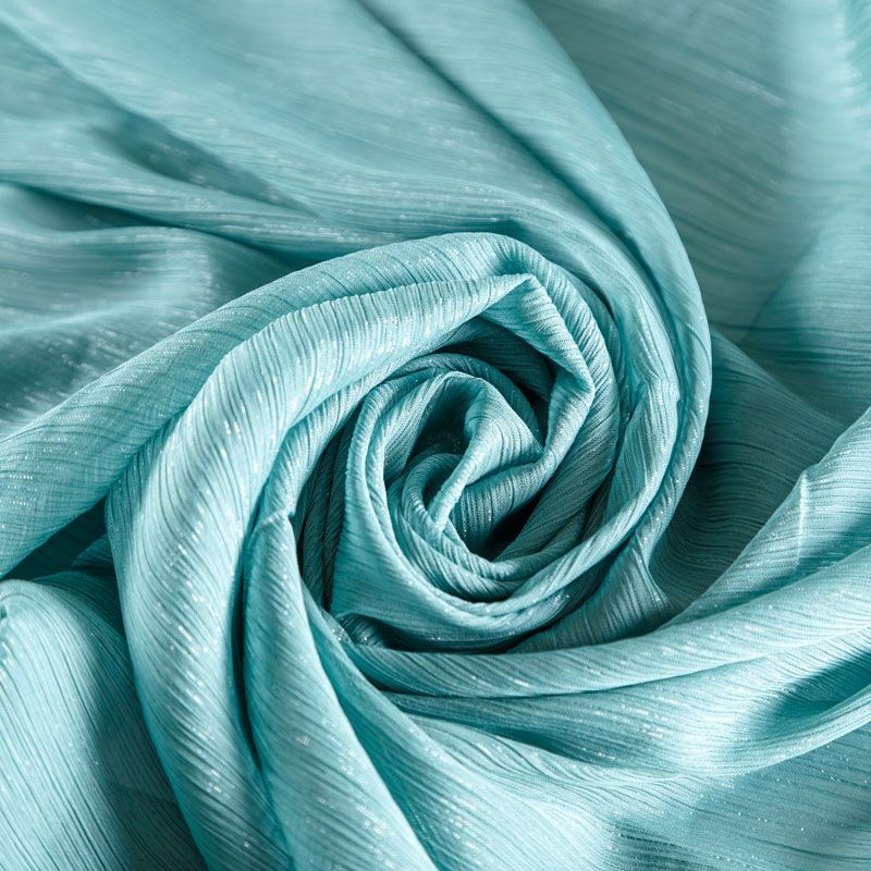 Воздушная жатая ткань с прозрачной люрексной нитью, легкая, тонкая, полупрозрачная. Не тянется и хорошо сохраняет форму. На ощупь шифон-жатка очень мягкий и приятный. Подойдет для пошива тончайших воздушных блуз, изумительных вечерних и летних платьев в пол, коротких коктейльных платьев, топов, блузок, туник и элегантных шарфов.