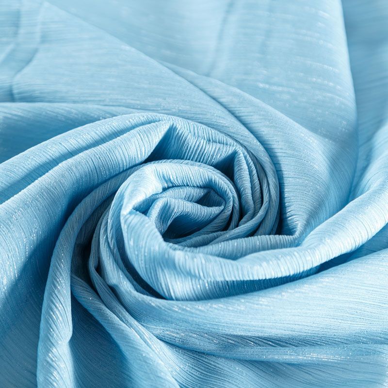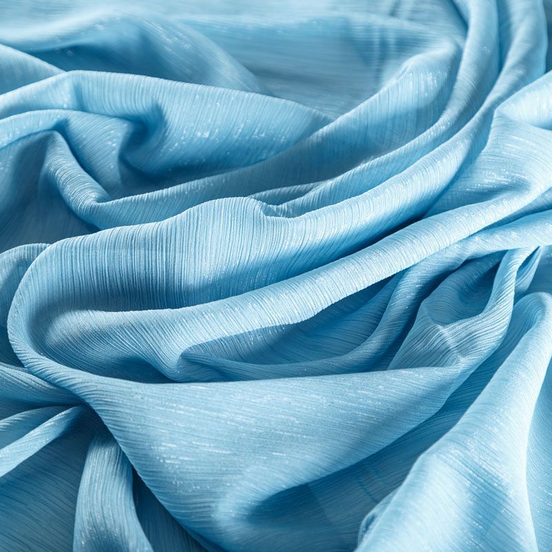 Воздушная жатая ткань с прозрачной люрексной нитью, легкая, тонкая, полупрозрачная. Не тянется и хорошо сохраняет форму. На ощупь шифон-жатка очень мягкий и приятный. Подойдет для пошива тончайших воздушных блуз, изумительных вечерних и летних платьев в пол, коротких коктейльных платьев, топов, блузок, туник и элегантных шарфов.