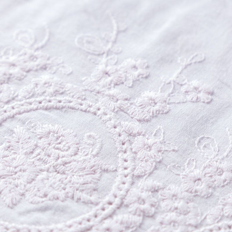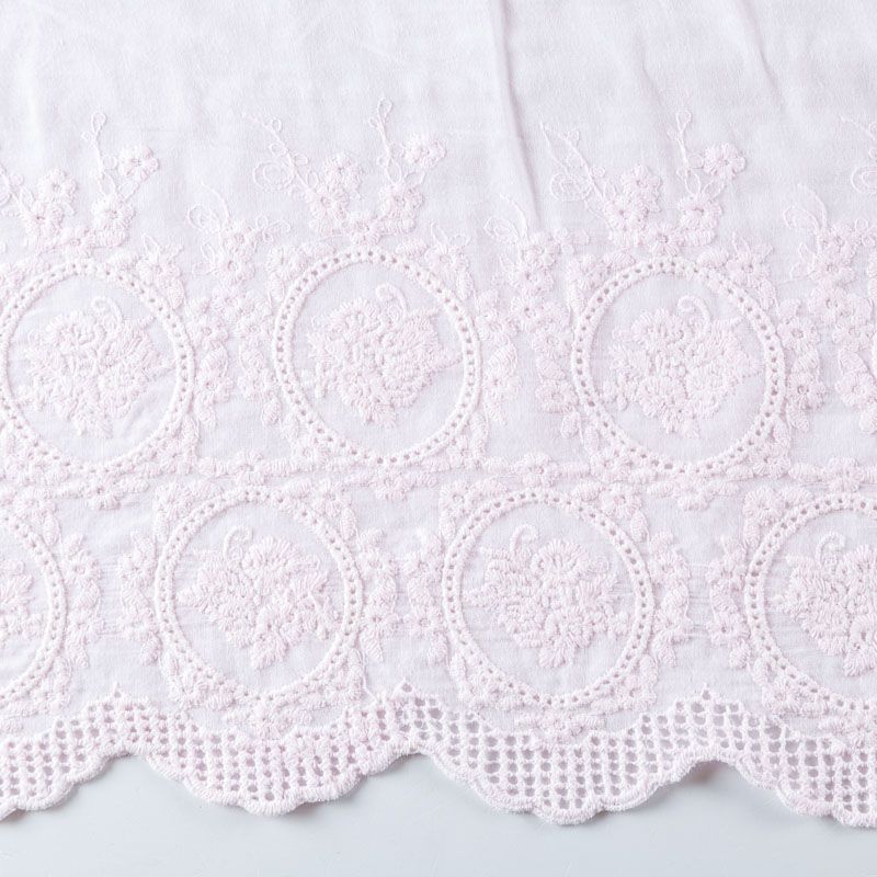 Мягкий и нежный хлопок розового оттенка с изящной вышивкой. Узор выполнен путём машинной вышивки нитками в цвет ткани и расположен вдоль кромки. Фактура ткани однородная, имеет тенденцию к сминаемости, просвечивает, не тянется, приятная на ощупь. Идеально подходит для создания летних платьев, сарафанов, юбок, блузок и топов.