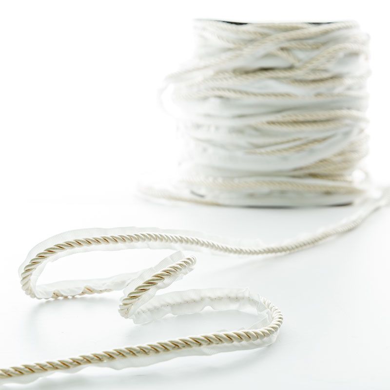Декоративный витой круглый шнур, снабженый тесьмой для втачивания в стыковочный шов изделия. Применяется для отделки мягкой мебели, чехлов, декорирования домашнего текстиля, штор, покрывал, подушек. Позволяет изделию сохранять форму, образуя каркас. Диаметр шнура - 6 мм.