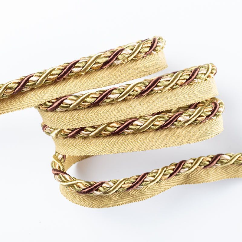 Декоративный витой круглый шнур, снабженый тесьмой для втачивания в стыковочный шов изделия. Применяется для отделки мягкой мебели, чехлов, декорирования домашнего текстиля, штор, покрывал, подушек. Позволяет изделию сохранять форму, образуя каркас. Диаметр шнура - 8 мм. Общая ширина шнура с тесьмой - 2 см.