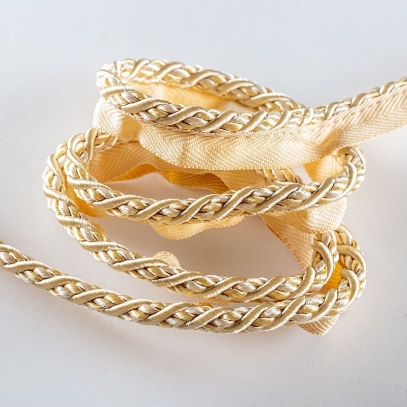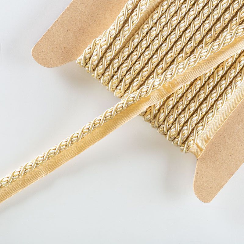 Декоративный витой круглый шнур, снабженый тесьмой для втачивания в стыковочный шов изделия. Применяется для отделки мягкой мебели, чехлов, декорирования домашнего текстиля, штор, покрывал, подушек. Позволяет изделию сохранять форму, образуя каркас. Диаметр шнура - 8 мм. Общая ширина шнура с тесьмой - 2 см.