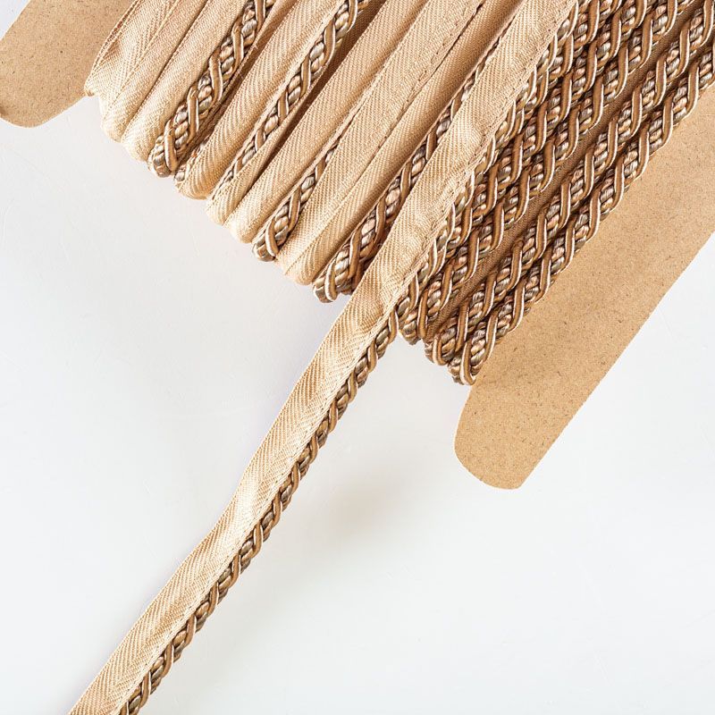 Декоративный витой круглый шнур, снабженый тесьмой для втачивания в стыковочный шов изделия. Применяется для отделки мягкой мебели, чехлов, декорирования домашнего текстиля, штор, покрывал, подушек. Позволяет изделию сохранять форму, образуя каркас. Диаметр шнура - 8 мм. Общая ширина шнура с тесьмой - 2 см.