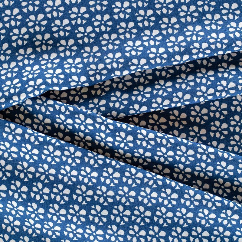 Плательно-блузочный штапель от итальнского дизайнера с мелким принтом в виде цветочков на синем фоне. Мягкий, тонкий, нежный, пластичный, приятный на ощупь, хорошо драпируется, практичный. Подойдет для пошива платья, топа, блузки, рубашки, юбки, летних брюк.