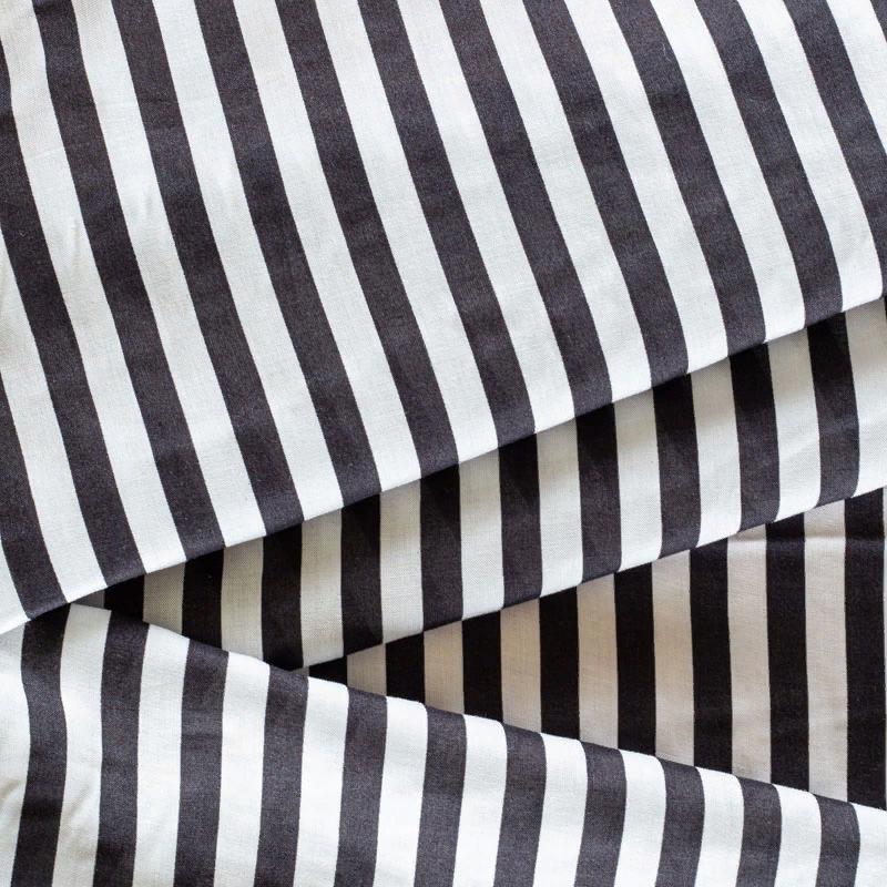 Плательно-блузочный штапель в вертикальную полоску средней ширины черного цвета. Ткань мягкая, тонкая, нежная, пластичная, приятная на ощупь, хорошо драпируется, практичная, поверхность слегка фактурная. Подойдет для пошива платья, топа, блузки, рубашки, юбки, летних брюк.