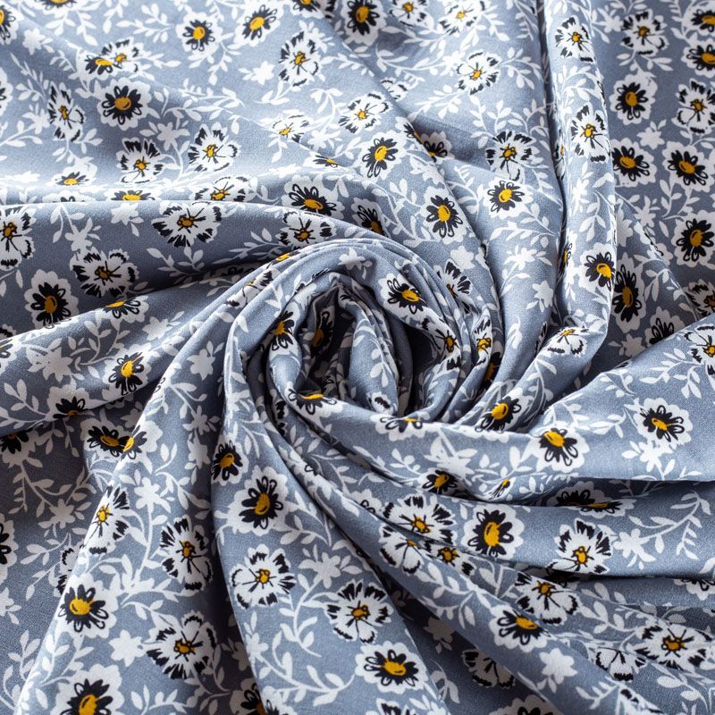 Плательно-блузочный штапель с не крупным цветочным принтом на сером фоне. Мягкий, тонкий, нежный, пластичный, приятный на ощупь, хорошо драпируется, практичный. Подойдет для пошива платья, топа, блузки, рубашки, юбки, летних брюк.