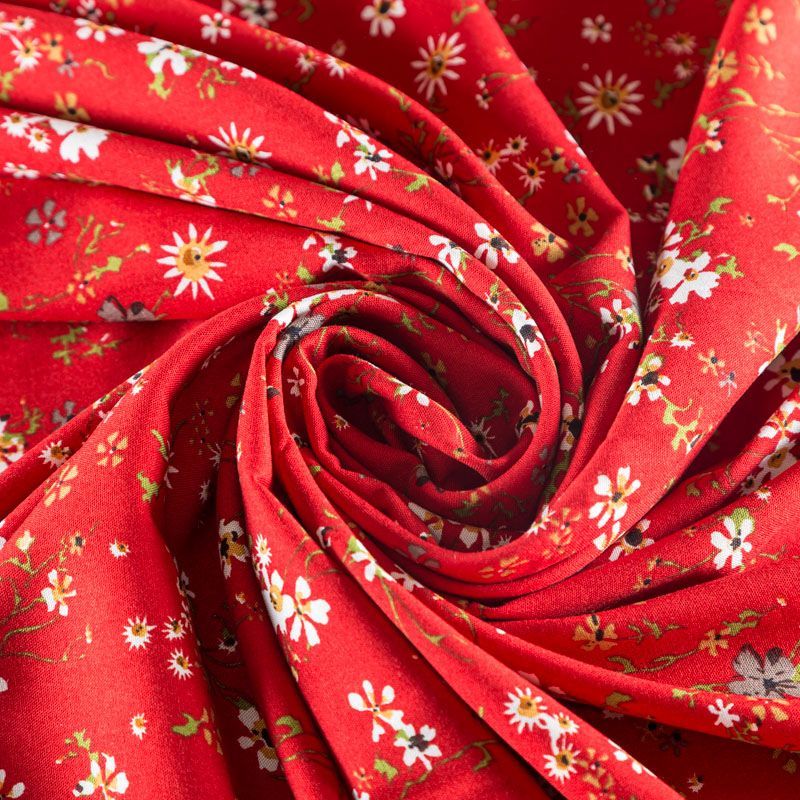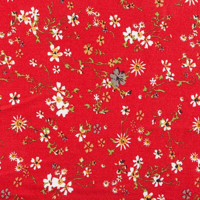 Плательно-блузочный штапель с мелким растительным принтом на красном фоне с терракотовым оттенком. Мягкий, тонкий, нежный, пластичный, приятный на ощупь, хорошо драпируется, практичный. Подойдет для пошива платья, топа, блузки, рубашки, юбки, летних брюк, комбинезона.