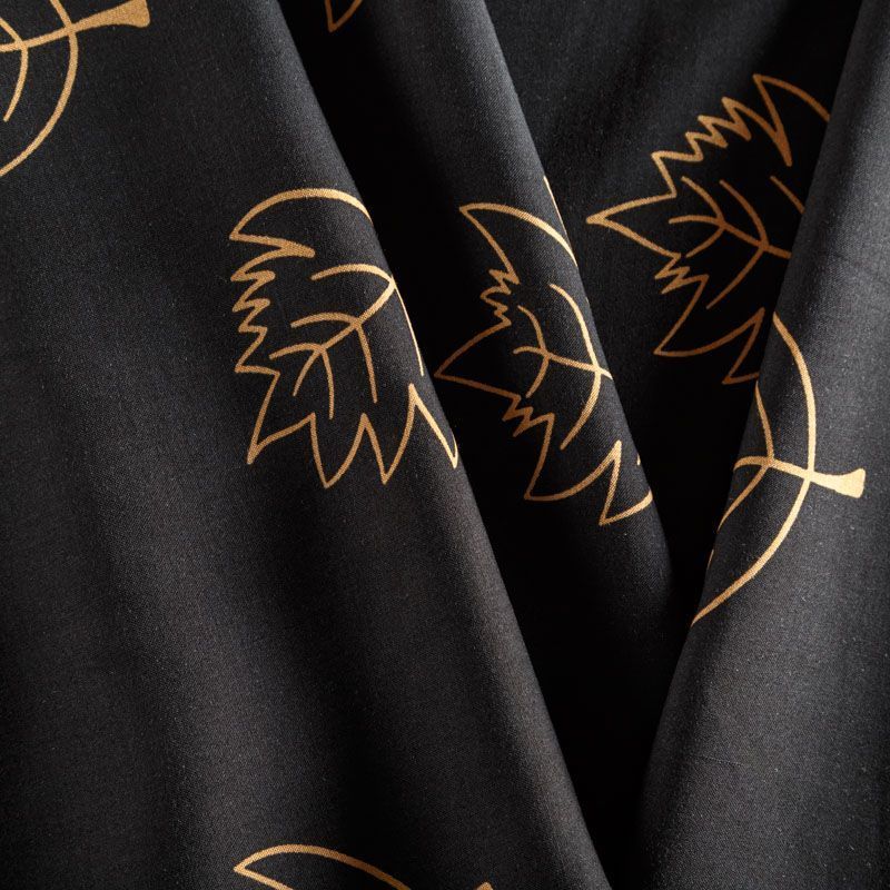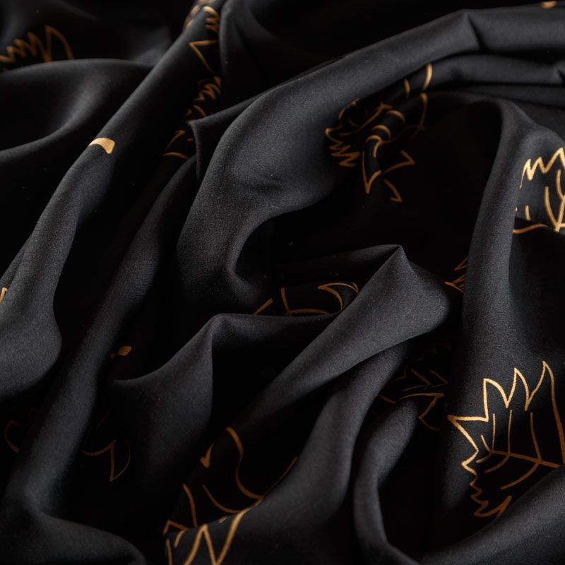 Плательно-блузочный штапель с редким ненавязчивым растительным принтом в бежевом оттенке на черном фоне. Материал мягкий, тонкий, нежный, пластичный, приятный на ощупь, хорошо драпируется, практичный. Подойдет для пошива платья сарафана, топа, блузки, рубашки, юбки, летних брюк, комбинезона, а также домашней одежды.