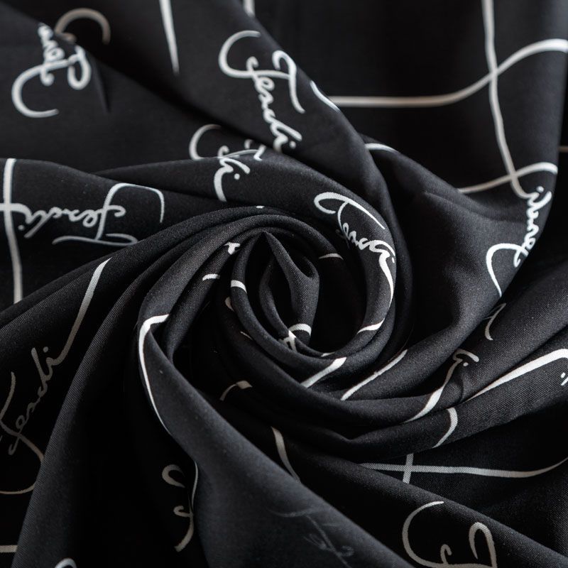 Плательно-блузочный штапель с белым графичным принтом на черном фоне. Материал мягкий, тонкий, нежный, пластичный, приятный на ощупь, хорошо драпируется, практичный. Подойдет для пошива платья сарафана, топа, блузки, рубашки, юбки, летних брюк, комбинезона, а также домашней одежды.