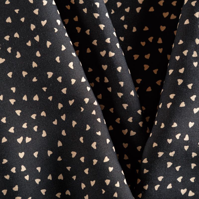 Плательно-блузочный штапель с мелким романтичным принтом в бежевом оттенке на черном фоне. Материал мягкий, тонкий, нежный, пластичный, приятный на ощупь, хорошо драпируется, практичный. Подойдет для пошива платья сарафана, топа, блузки, рубашки, юбки, летних брюк, комбинезона, а также домашней одежды.