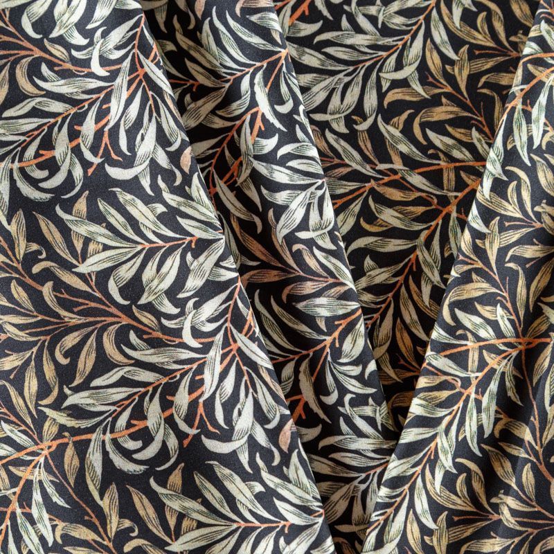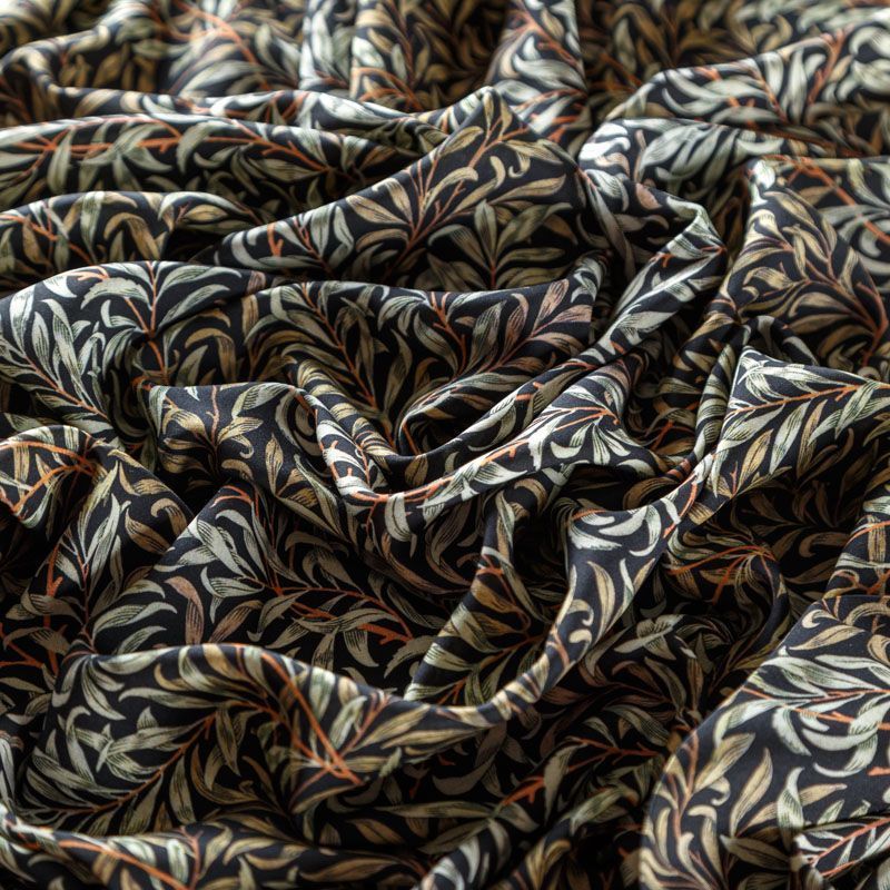 Итальянский плательно-блузочный штапель в черном цвете с растительным принтом. Ткань мягкая, тонкая, нежная и пластичная, приятная на ощупь, хорошо драпируется, практичная. Подойдет для пошива платья, топа, блузки, рубашки, юбки, летних брюк.