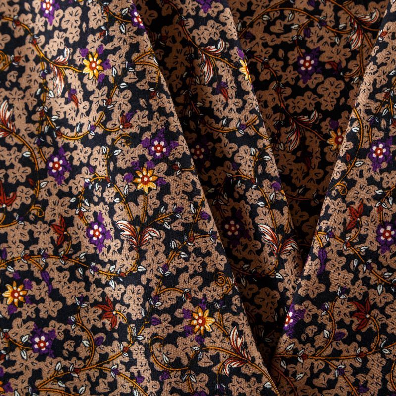 Плательно-блузочный штапель с растительным принтом. Мягкий, тонкий, нежный, пластичный, приятный на ощупь, хорошо драпируется, практичный. Подойдет для пошива платья, топа, блузки, рубашки, юбки, летних брюк, комбинезона.