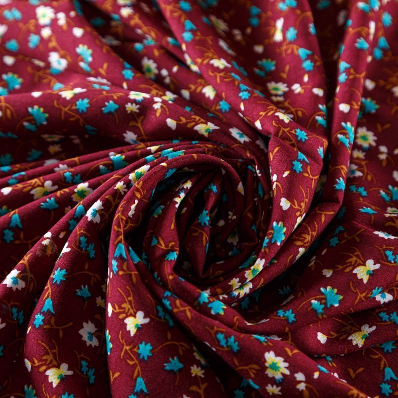 Плательно-блузочный штапель с мелкоцветным принтом на бордовом фоне. Мягкий, тонкий, нежный, пластичный, приятный на ощупь, хорошо драпируется, практичный. Подойдет для пошива платья, топа, блузки, рубашки, юбки, летних брюк, комбинезона.