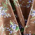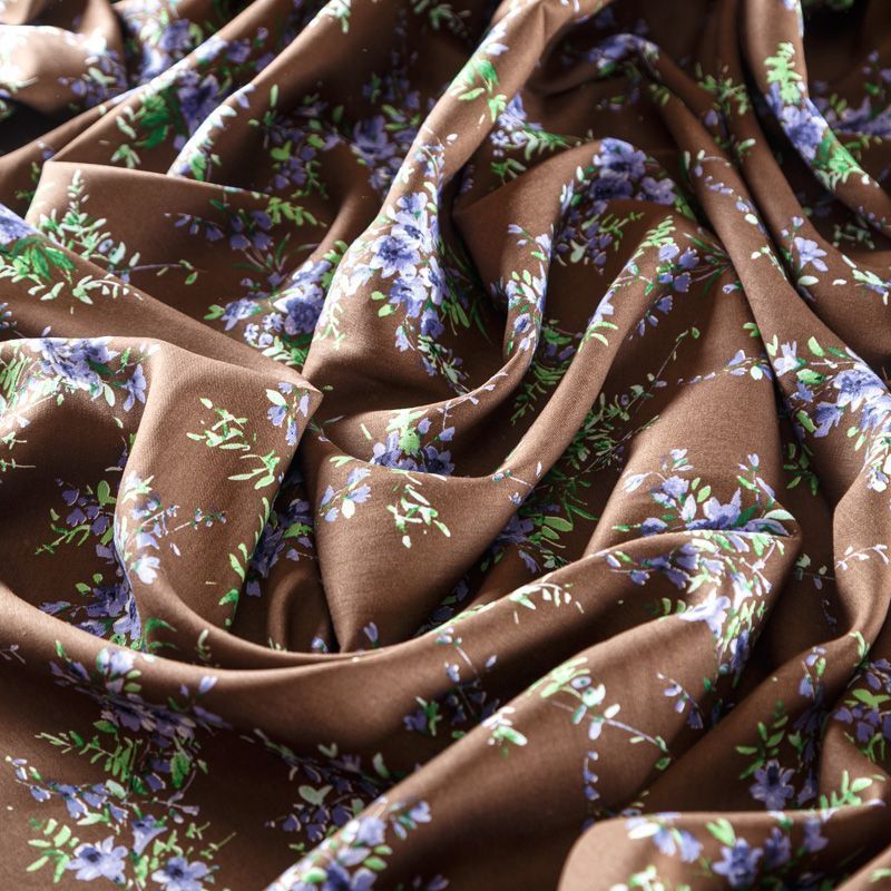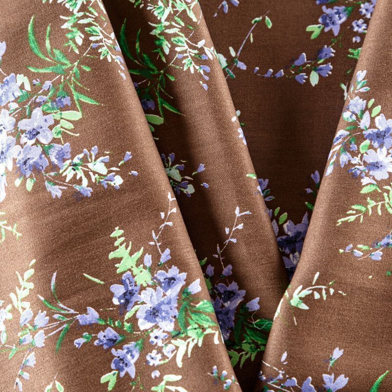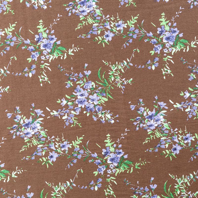 Плательно-блузочный штапель с цветочным принтом на шоколадном фоне. Мягкий, тонкий, нежный, пластичный, приятный на ощупь, хорошо драпируется, практичный. Подойдет для пошива платья, топа, блузки, рубашки, юбки, летних брюк, комбинезона, домашней одежды.