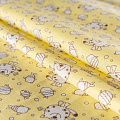 Ткань полотняного переплетения, тонкая, легкая и мягкая. Не вызывает аллергии, дышит и хорошо впитывает влагу. Милый детский принт в виде рисованных животных на светло-желтом фоне прекрасно подойдет для пошива детской одежды, нательного белья, халатов и пижам.