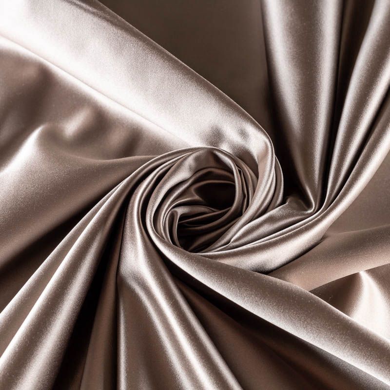 Тафта из натурального шелка бронзового оттенка превосходный выбор для изготовления пышных или с объемными драпировками платьев, юбок, костюмов. Ткань средней плотности с гладкой поверхностью и атласным блеском, хорошо держит форму и драпируется, укладывается в объемные складки, воланы, оборки и драпировки.