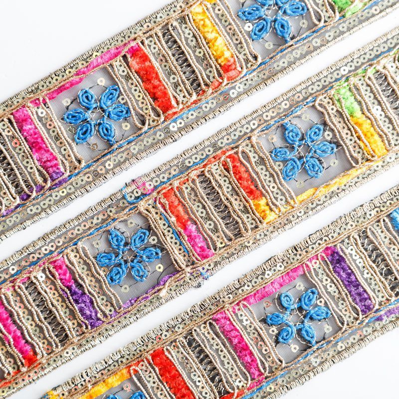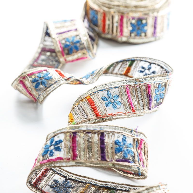 Декоративная тесьма на основе из органзы с богатым декором в виде вышивки, бисера, пайеток. Применяется для отделки одежды, украшений, поделок.