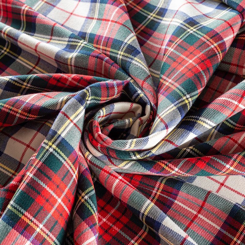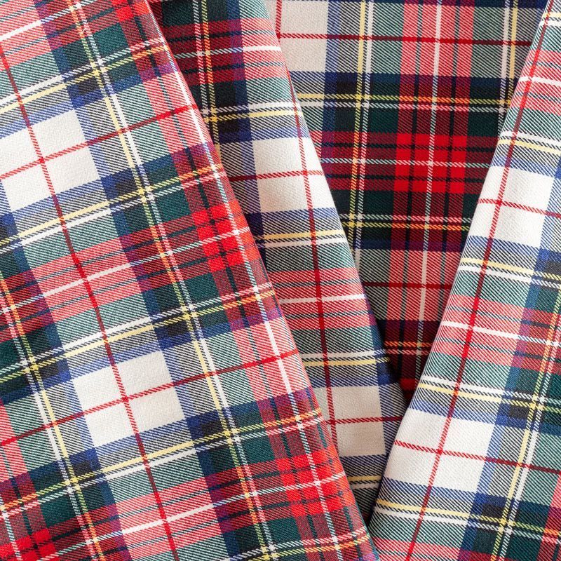 Плотная костюмно-плательная шотландка, мягкая, приятная на ощупь, немного эластичная, хорошо драпируется и образует мягкие складки. Сочетание линий синего, красного, желтого и черного оттенков образует сложную красивую многоцветную клетку. Ткань отлично подойдет на костюмы, юбки, брюки, платья, жакеты, школьную форму.