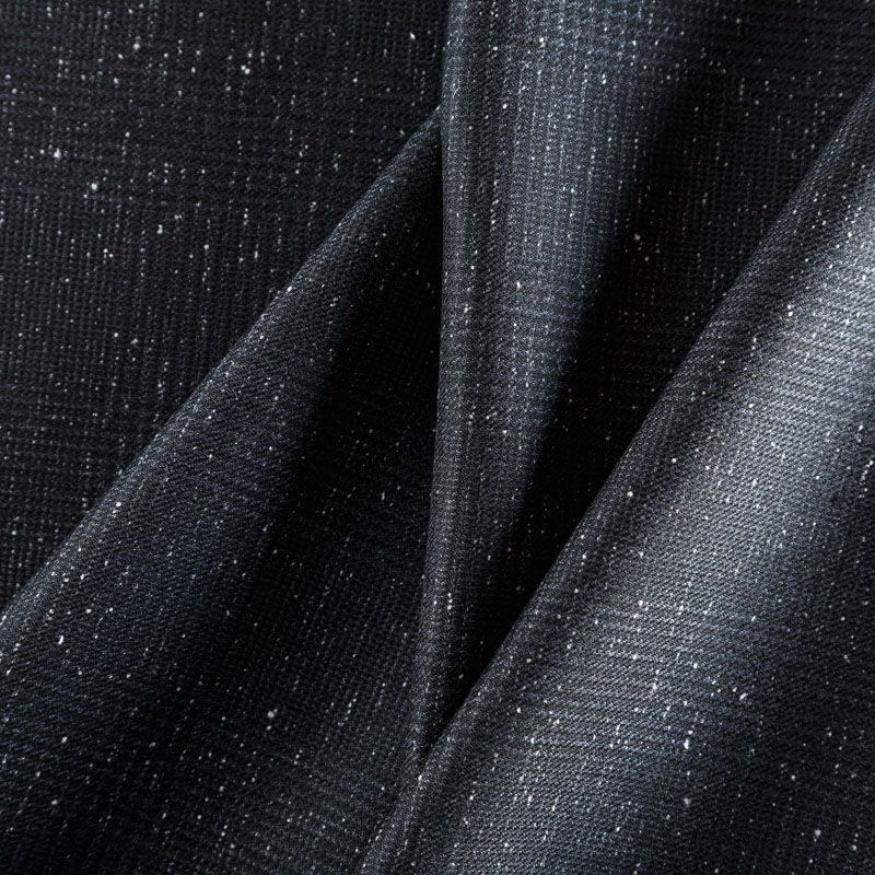 Итальянская костюмная шерсть средней плотности с добавлением шелка черного цвета в клетку гленчек и мелкими белыми вкраплениями. Ткань очень мягкая, пластичная, поверхность гладкая и шелковистая на ощупь. Подойдет для пошива костюма, брюк, юбки, шорт, жакета, платья, сарафана, жилета.