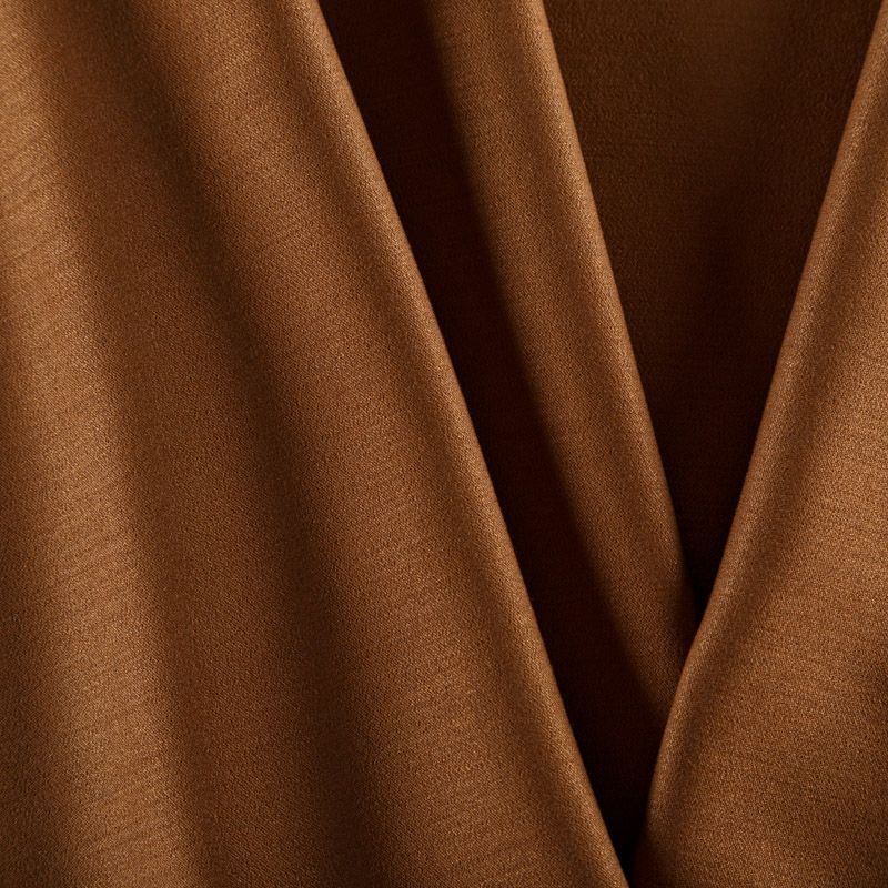 Костюмно-плательная ткань в оттенке корицы. Ткань пластичная, очень приятная на ощупь, драпируется в слегка держащие форму складки, поверхность с полотняным переплетением, тянется за счет эластана в составе. Подойдет для всех видов изделий - платьев, сарафанов, модных жакетов, жилетов, брючных и юбочных костюмов, кюлотов, брюк-палаццо, юбок различных фасонов.