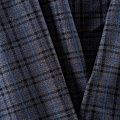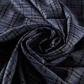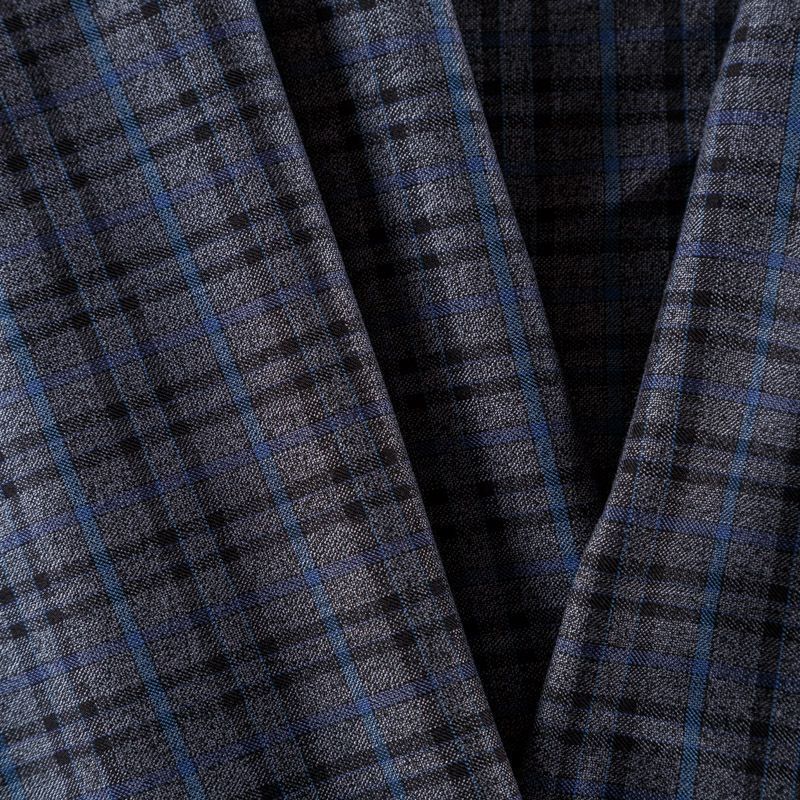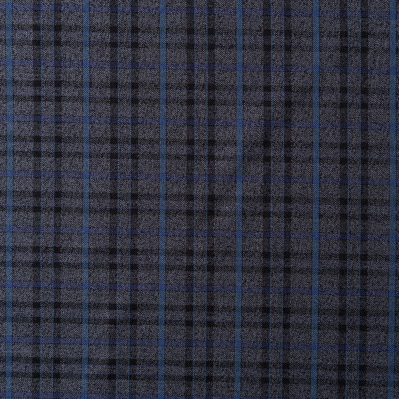 Костюмно-плательная ткань средней плотности, мягкая и приятная на ощупь, тянется за счет эластана в составе, формоустойчива, хорошо драпируется и образует устойчивые складки. Сочетание серого, синего и черного цветов образует сложную красивую клетку. Ткань отлично подойдет на костюмы, юбки, брюки, платья, жакеты, для пошива школьной формы.