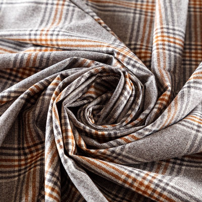 Итальянская костюмно-плательная шерсть в сером оттенке. Сочетание линий молочного, оранжевого и серого цветов образуют красивую сложную клетку. Ткань средней плотности, пластичная, очень приятная на ощупь, драпируется в слегка держащие форму складки, с полотняным переплетением, не тянется. Подойдет для всех видов изделий - платьев, сарафанов, модных жакетов, жилетов, брючных и юбочных костюмов, кюлотов, брюк-палаццо, юбок различных фасонов.