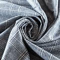 Итальяская костюмно-плательная шерсть в серо-голубых оттенках в клетку тартан. Ткань средней плотности, пластичная, очень приятная на ощупь, драпируется в слегка держащие форму складки, с полотняным переплетением, не тянется. Подойдет для всех видов изделий - платьев, сарафанов, модных жакетов, жилетов, брючных и юбочных костюмов, кюлотов, брюк-палаццо, юбок различных фасонов.