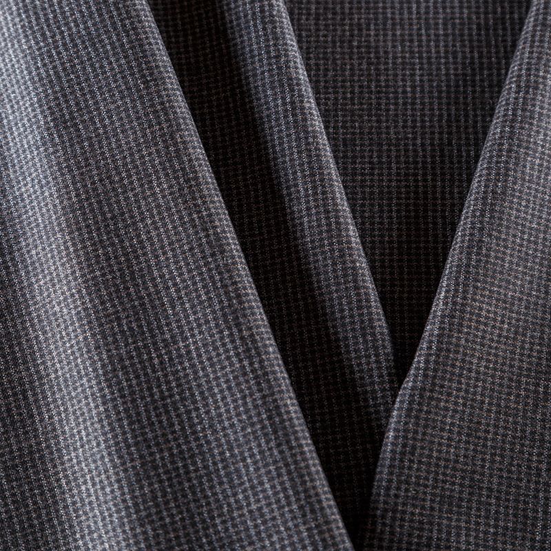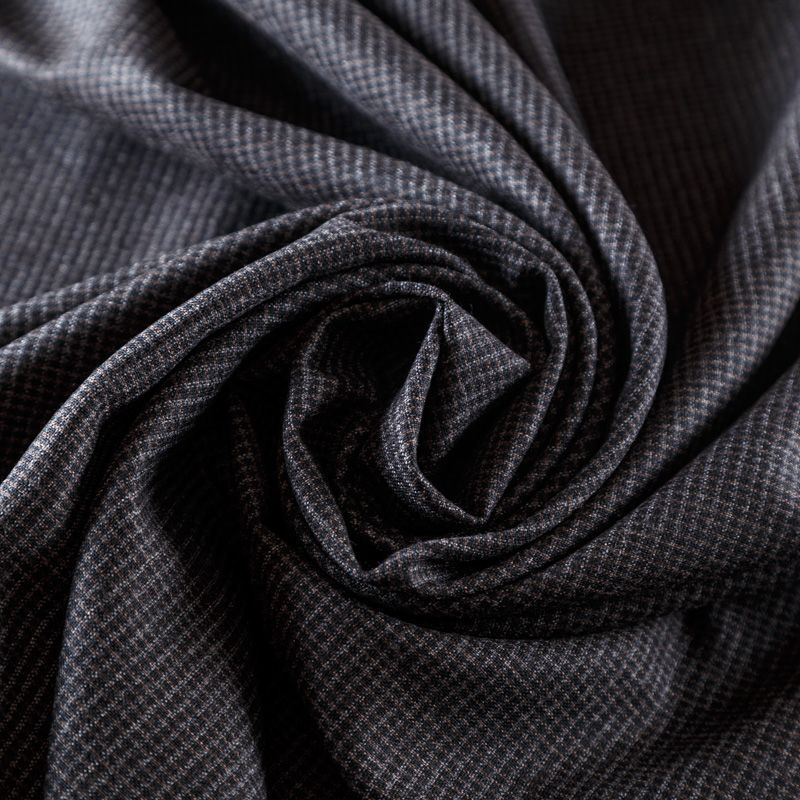 Итальянская костюмно-плательная шерсть темно-серого оттенка в мелкую клеточку. Ткань средней плотности, пластичная, очень приятная на ощупь, драпируется в слегка держащие форму складки, с полотняным переплетением, не тянется. Подойдет для всех видов изделий - платьев, сарафанов, модных жакетов, жилетов, брючных и юбочных костюмов, кюлотов, брюк-палаццо, юбок различных фасонов.