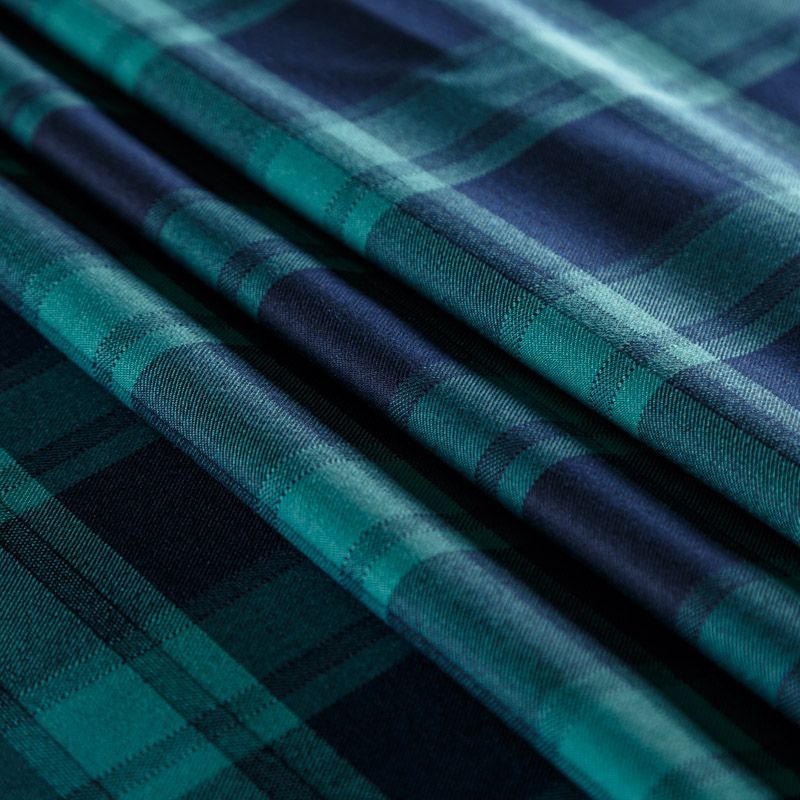 Костюмно-плательная шотландка средней плотности в сине-зеленых оттенках. Материал в меру мягкий и приятный на ощупь, держит форму, хорошо драпируется и образует устойчивые складки. Ткань отлично подойдет на костюмы, в том числе мужские, юбки, брюки, платья, жакеты, для пошива школьной формы.