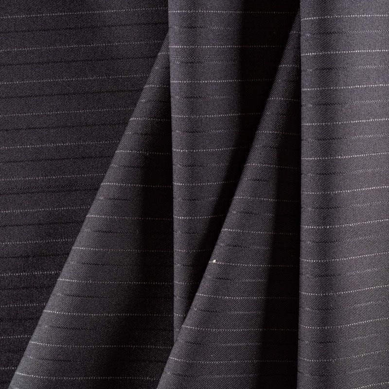 Костюмно-плательная смесовая ткань средней плотности, тонкая, очень приятная на ощупь, драпируется в слегка держащие форму складки. Сочетание тонкой молочной и жаккардовой полосы в тон ткани, направленных вдоль кромки, придает ткани элегантности. Подойдет для всех видов изделий - платьев, сарафанов, модных жакетов, жилетов, брючных и юбочных костюмов, кюлотов, брюк-палаццо, юбок различных фасонов.
