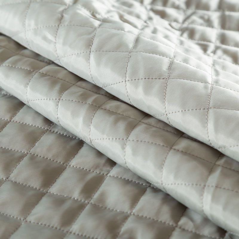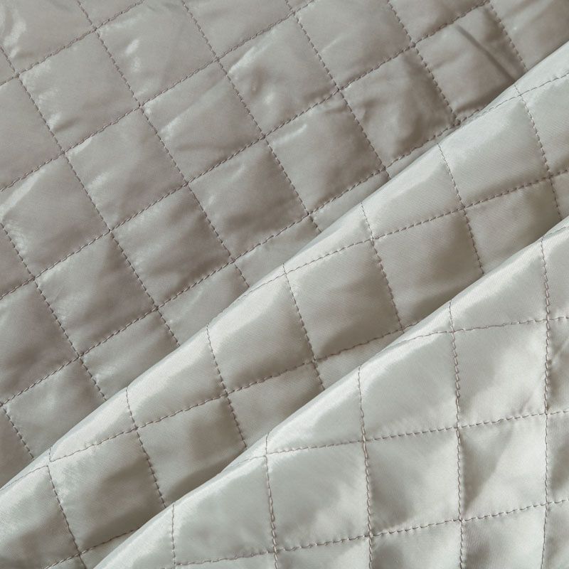 Двухслойная курточная ткань серо-зеленого оттенка, простеганная не крупными ромбами размером 3х3 см. Нижний слой - синтепон, верхний - полиэстер, по качеству напоминает болонь. Очень мягкая и легкая, пластичная, хорошо драпируется. Прекрасно подойдет для  пошива легких пальто, курток, жилетов, накидок-кейпов, объемных сумок.