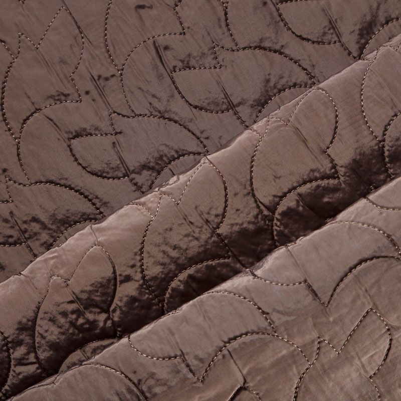 Двухслойная курточная ткань холодного серо-бежевого оттенка, простеганная фигурной вышивкой нитками в тон. Нижний слой - синтепон, верхний - плотный матовый полиэстер. Очень мягкая и легкая, пластичная, хорошо драпируется. Прекрасно подойдет для  пошива легких пальто, курток, жилетов, накидок-кейпов, объемных сумок.