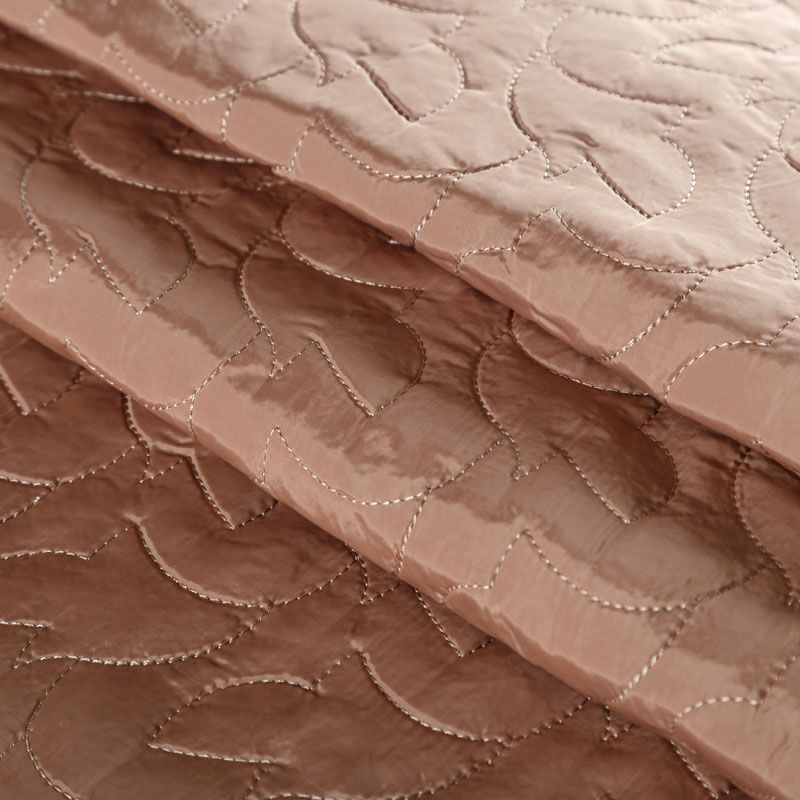Двухслойная курточная ткань холодного бежевого оттенка, простеганная фигурной вышивкой нитками в тон. Нижний слой - синтепон, верхний - плотный матовый полиэстер. Очень мягкая и легкая, пластичная, хорошо драпируется. Прекрасно подойдет для  пошива легких пальто, курток, жилетов, накидок-кейпов, объемных сумок.