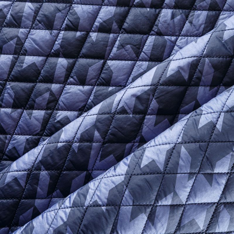 Двухслойная курточная ткань сложного пепельно-лавандового оттенка с необычным для стежки принтом - гусиная лапка, простеганная не крупными ромбами размером 4х4 см. Нижний слой - синтепон, верхний - полиэстер, по качеству напоминает болонь. Очень мягкая и легкая, пластичная, хорошо драпируется. Прекрасно подойдет для  пошива легких пальто, курток, жилетов, накидок-кейпов, объемных сумок.