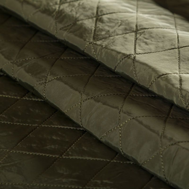 Двухслойная курточная ткань зеленого оттенка, простеганная не крупными ромбами. Нижний слой - синтепон, верхний - полиэстер, по качеству напоминает болонь. Очень мягкая и легкая, пластичная, хорошо драпируется. Прекрасно подойдет для пошива легких пальто, курток, жилетов, накидок-кейпов, объемных сумок.