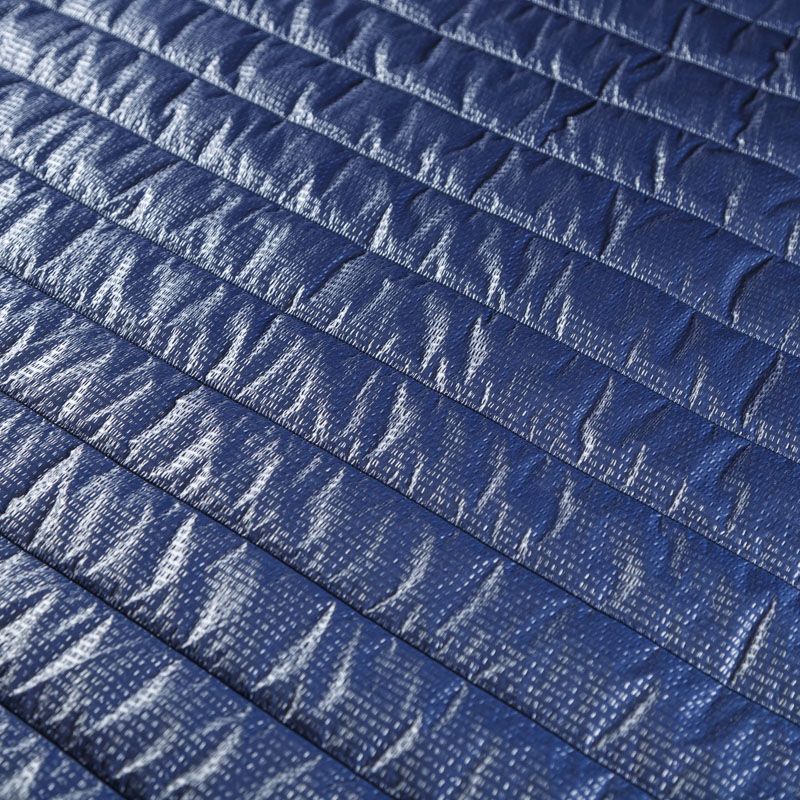 Итальяская двухслойная курточная ткань темно-синего оттенка, простеганная широкими полосами вдоль кромки. Нижний слой - воздушный синтепоновый утеплитель, верхний - матовая плащевая ткань с жатым эффектом. Очень мягкая и легкая, пластичная, хорошо драпируется. Прекрасно подойдет для пошива легких пальто, бомберов, парки, курток, жилетов, накидок-кейпов, объемных сумок.