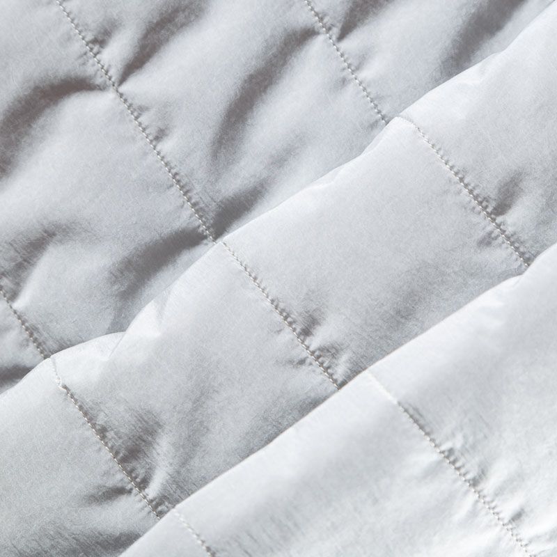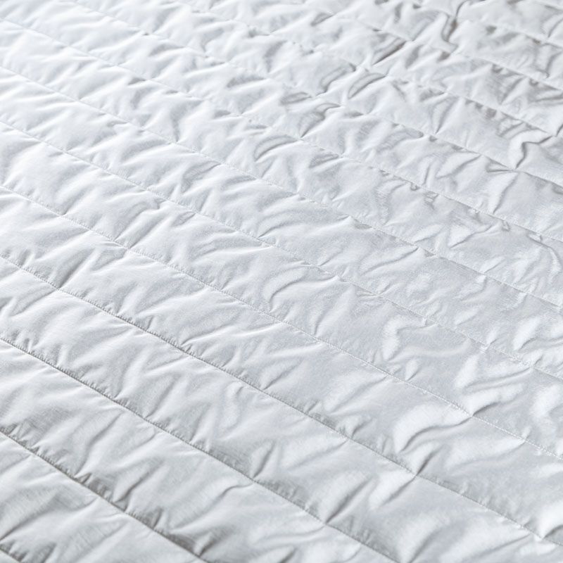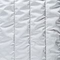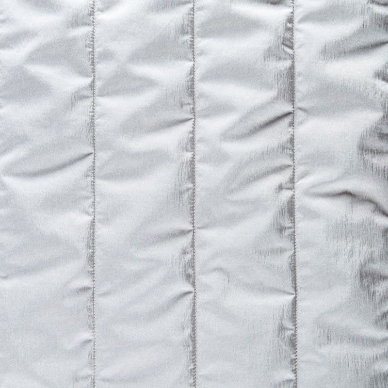 Итальяская двухслойная курточная ткань серебристо-серого оттенка, простеганная широкими полосами вдоль кромки. Нижний слой - воздушный синтепоновый утеплитель, верхний - матовая, слегка жатая плотная плащевая ткань. Очень мягкая и легкая, пластичная, хорошо драпируется. Прекрасно подойдет для  пошива легких пальто, бомберов, парки, курток, жилетов, накидок-кейпов, объемных сумок.