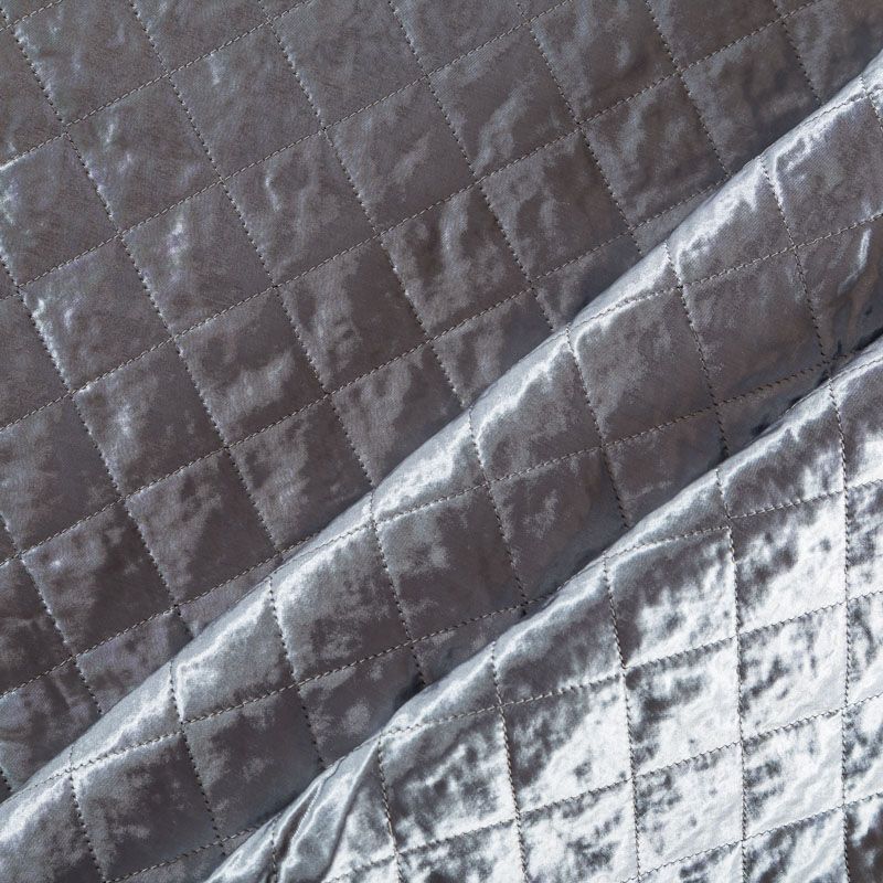 Двухслойная курточная ткань серебристо-серого оттенка с легким блеском, простеганная не крупными ромбами размером 3х3 см. Нижний слой - синтепон, верхний - полиэстер, по качеству напоминает болонь. Очень мягкая и легкая, пластичная, хорошо драпируется. Прекрасно подойдет для пошива легких пальто, курток, жилетов, накидок-кейпов, объемных сумок.