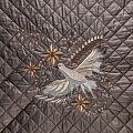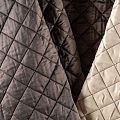 Курточный купон на синтепоне и подкладке, простеганный не крупными ромбами размером 3,5х3,5 см. С лицевой стороны тонкая, но прочная плащевая ткань с фантазийной вышивкой, с изнаночной - однотонная ткань песочного оттенка. Материал мягкий, объемный и "воздушный", хорошо держит форму и подойдет для пошива легких пальто, курток, жилетов, накидок-кейпов, парки.